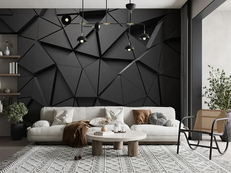 Naša 3D tapeta u tamnoj geometriji unosi luksuznu dramatičnost u svaki savremeni enterijer.