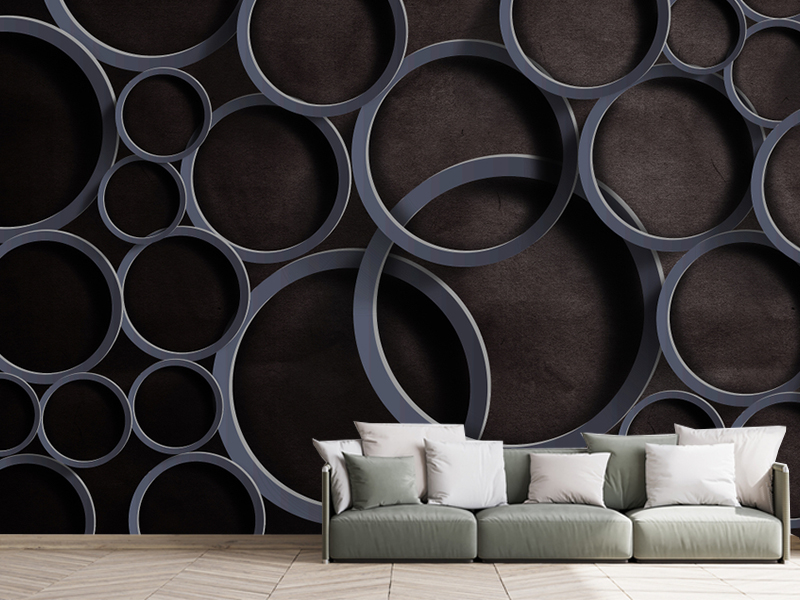 Mat crni krugovi, poput karika raspoređeni na crnoj pozadini tapete odišu stilom i elegancijom.