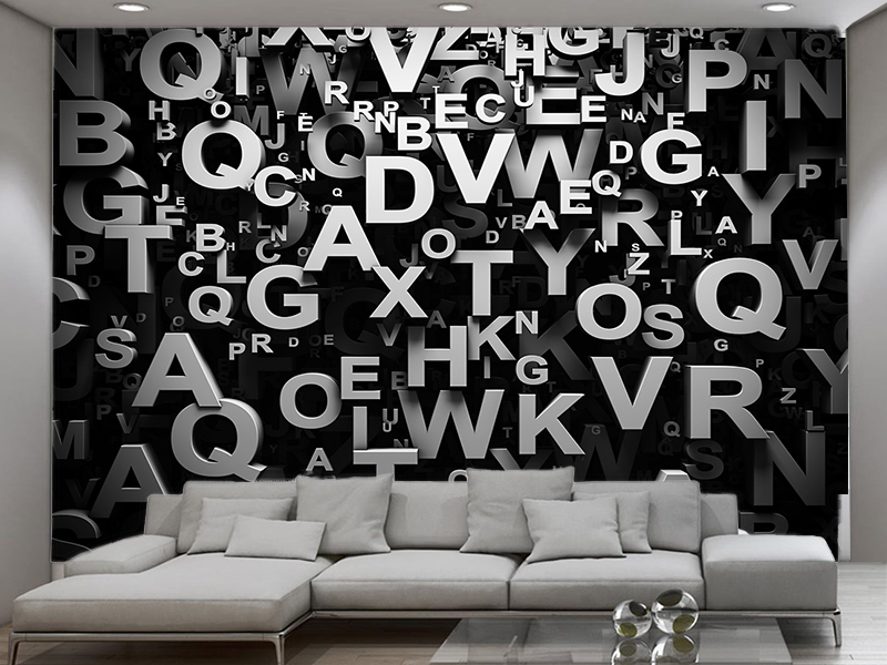 Tapeta sa crnom pozadinom i dimenzionalnim slovima izgleda fantastično! Uklopite ovu tapetu sa detaljima u boji i Vaš prostor će blistati.