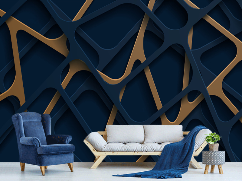Duboka noćna plava i elegantni zlatni rezovi stvaraju zid koji izgleda kao komad modernog luksuza, unoseći sofisticiranost u svaki enterijer. Ovaj dizajn donosi vizuelnu dubinu, dinamiku i suptilan 3D efekat koji prostor čini ekskluzivnijim i savremenijim.