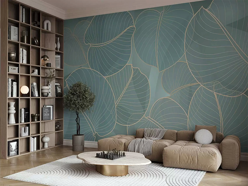 Elegantna tapeta sa stilizovanim listovima u zlatnim linijama na nežnoj zeleno-plavoj pozadini unosi savršen balans prirode i sofisticiranosti u svaki prostor. Minimalistički dizajn, smirujuće boje i zlatni detalji čine je idealnim izborom za moderan enterijer sa dozom luksuza.