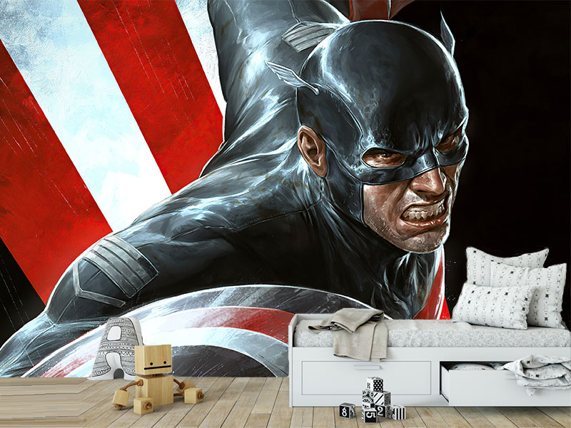 Borbeni Kapetan Amerika stisnutih zuba, spreman za odbranu! Za obožavatelje prvog osvetnika, ova foto tapeta je idealna dekoracija.
