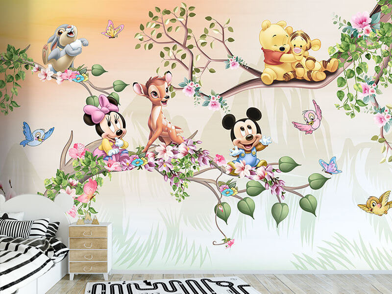 Vesela, topla i puna bajkovite radosti – ova fototapeta unosi omiljene junake u nežan šumski svet, stvarajući prostor u kome se mašta, igra i sigurnost savršeno spajaju. Idealna je za bebi i dečije sobe koje zrače toplinom i pozitivnom energijom.