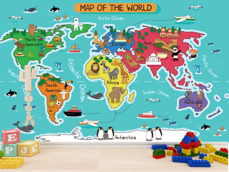 Ova tapeta ne predstavlja samo geografiju, već priču o svetu viđenu dečijim očima – kao mesto gde se boje susreću, gde mašta putuje bez granica i gde svaki kontinent nosi svoju malu bajku. Kako dete raste, tapeta ostaje jednako zanimljiva – prvo kao vizuelna igra, a kasnije kao inspiracija za učenje i istraživanje.