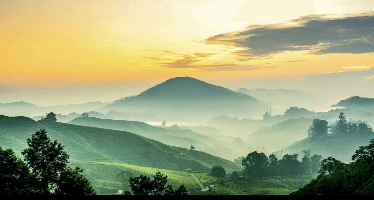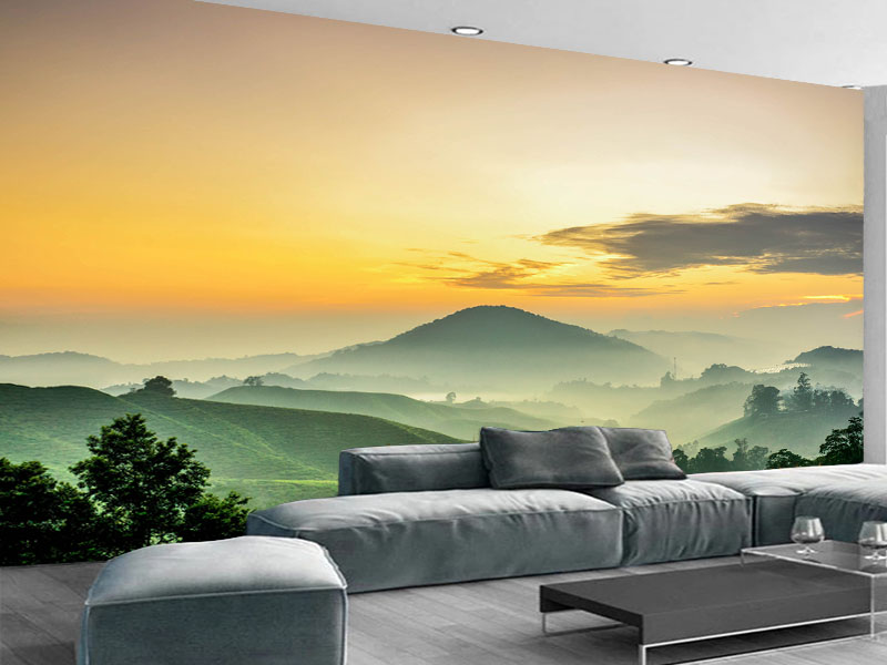 Fototapeta sa prizorom planinskog pejzaža u zlatnim tonovima unosi mir i harmoniju u vaš dom. Dubina slojeva maglovitih brežuljaka i toplina zalaska sunca stvaraju iluziju prostranstva i daju svakom enterijeru dozu luksuza i prirodne lepote. Idealna je za dnevne sobe i prostore u kojima želite da spojite eleganciju i spokoj prirode.