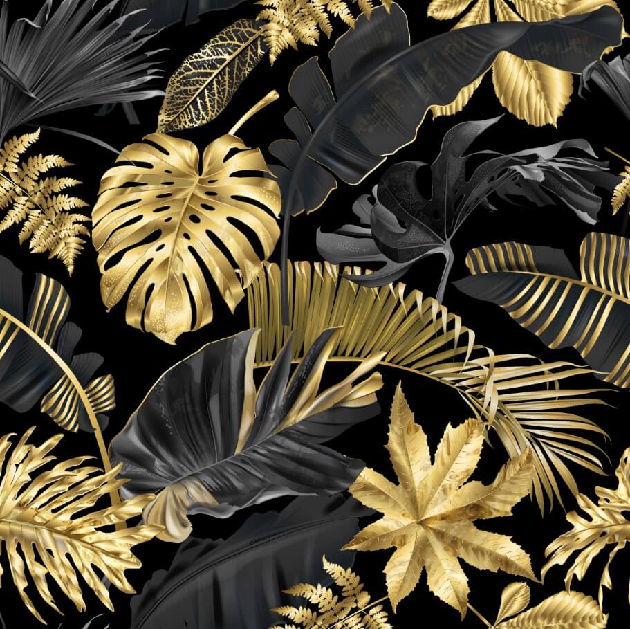 Moderan dizajn sa zlatno-crnim tropskim motivima