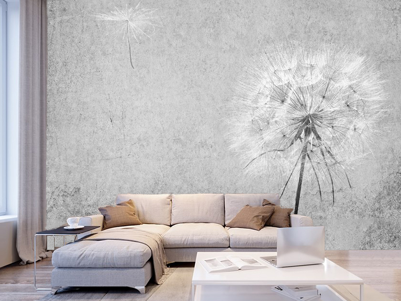 Beli maslačak na prljavo beloj tapeti, tako lep i jednostavan. Biće sjajna dekoracija u Vašem domu i uneti delikatnu lepotu cveća u Vaš dom.