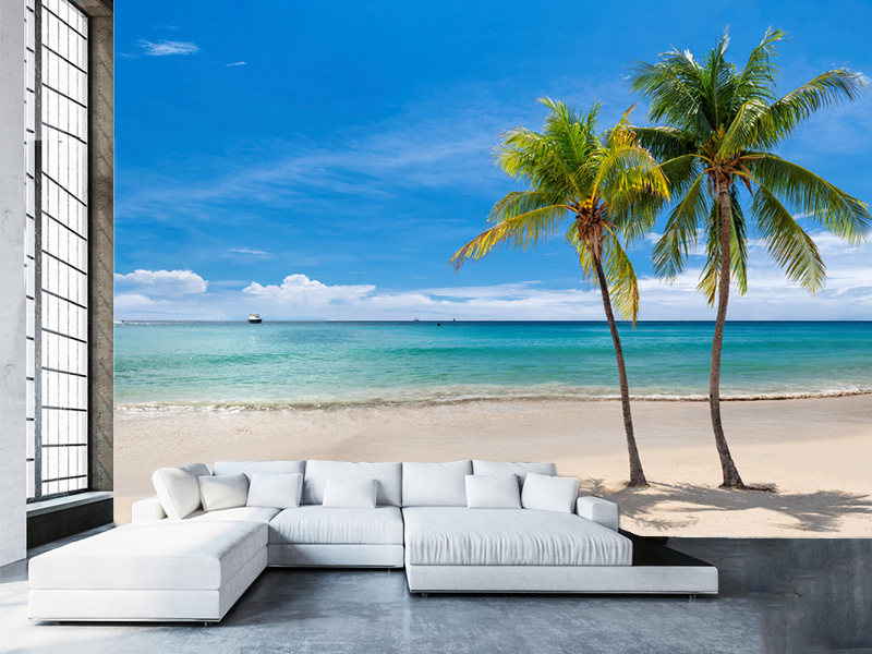 Pejzaž savršenog Karipskog mora, sa jedrenjakom i palmama i letnjim nebom može upotpuniti baš Vaš enterijer.