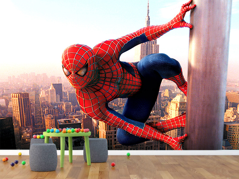 Razigrana i dinamična fototapeta koja prikazuje heroja kako se penje uz visoku zgradu iznad grada. Savršen izbor za decu koja vole akciju, visine i herojske avanture.