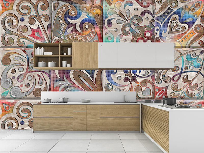 Zanimljive kombinacije oblika i boja ove foto tapete će Vam omogućiti da Vaša kuhinja bude vesela i jedinstvena.