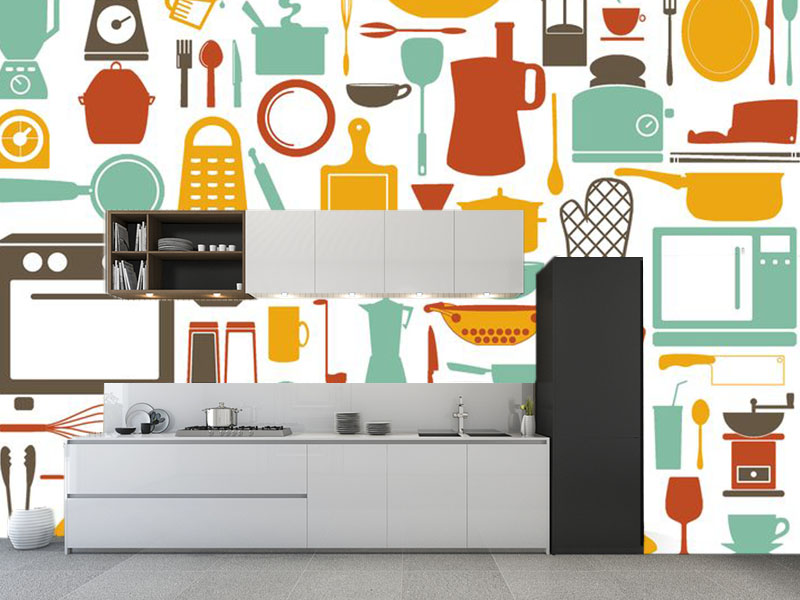 Raznobojni kuhinjski simoboli koji poput pravog umetničkog dela oslikavaju Vaš zid. Dinamičnost ove tapete će inspirativno delovati na energiju u prostoriji.