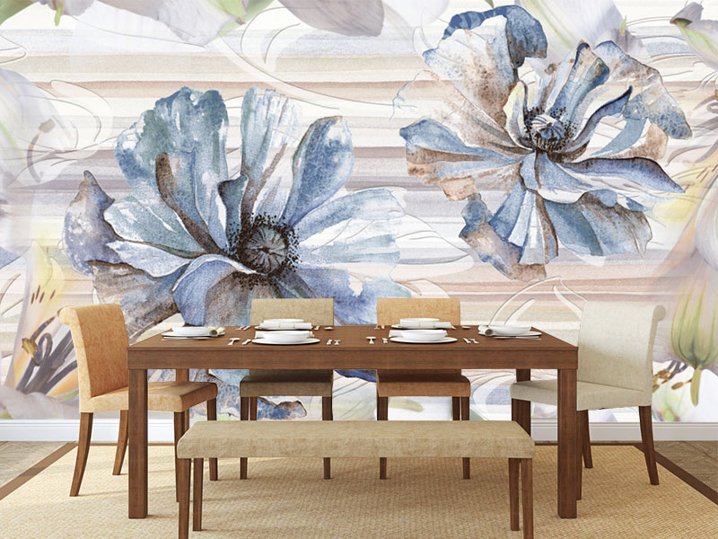 Oslikani neobični plavi cvetovi predstavljaju osnovu ove delikatne tapete. Kreativna tapeta poput ove oplemeniće Vaš enterijer.