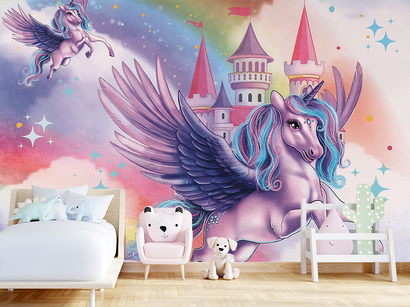 Magična i razigrana fototapeta sa krilatim jednorozima koja dečiju sobu pretvara u bajkovito carstvo snova i letenja. Savršen izbor za decu koja vole fantaziju, dvorce i čarobne svetove.
