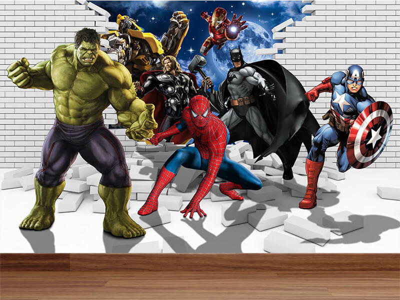 Svi omiljeni junaci na jednom zidu! Zašto se odlučiti za jednog heroja kada možete imati čitavu ligu? Ova fototapeta je pravi „all-in-one“ za dečiju sobu, spajajući legende iz Marvela, DC-ja i Transformersa. Dizajnirana je tako da stvori maksimalan 3D efekat – beli zid puca u paramparčad, a kroz rupu uleću heroji spremni za akciju.