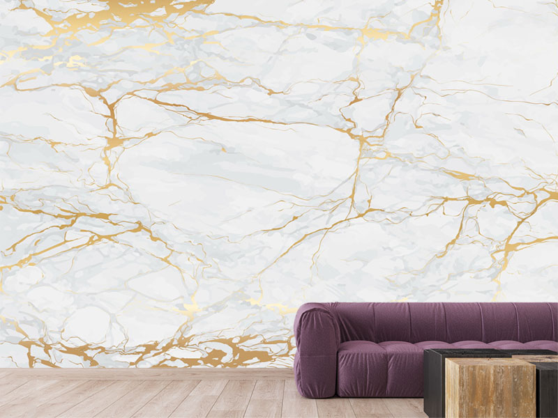 Stilska tapeta vrlo efektnog motiva belog kamena, sa primesama zlatnog reljefastog obrisa.