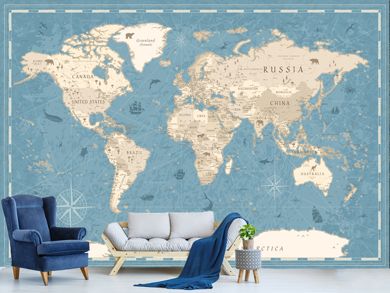 Savremeni prikaz karte sveta sa vintidž motivom.Na ovoj tapeti se još prikazuje i naseljenost sveta u određenom trenutku u prošlosti.