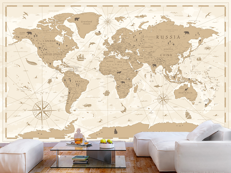 Klasična vintidž karta sveta u jednoj boji, lepo će ukrasiti Vaš enterijer bez pompe. Ali ćete svakodnevno uživati u efektu ove foto tapete.