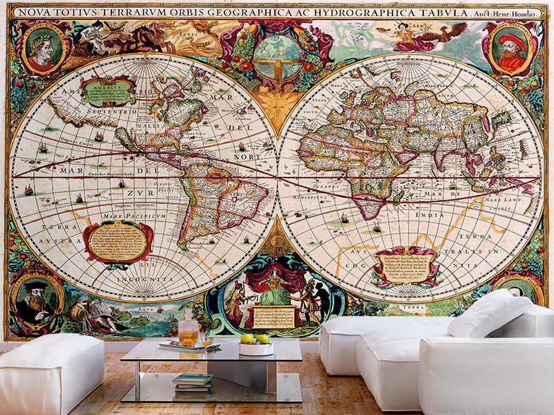 Umetnički prikaz mape sveta u raznim bojama i sa divno ukrašenom pozadinom tapete.