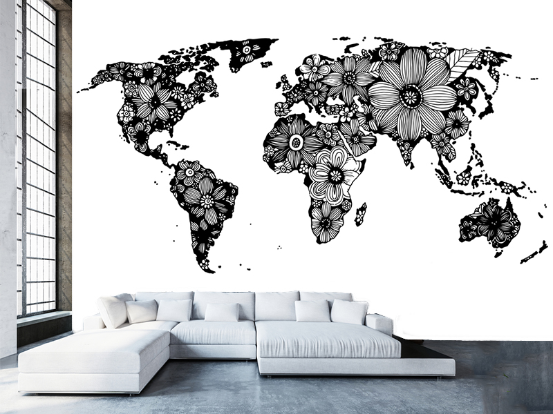 Cvećem dekorisani kontinenti crno-bele boje, na beloj tapeti. Uklopiće se lepo u postojeću dekoraciju enterijera i uneće dozu prefinjenosti u njega.