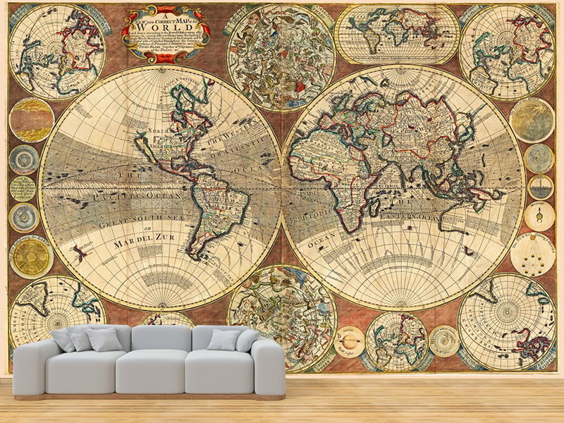 Zemlja podeljena na dva dela sa prikazima različitih perspektiva na našu planetu. Vintidž foto tapeta za dekoraciju radne sobe ili kućne biblioteke.