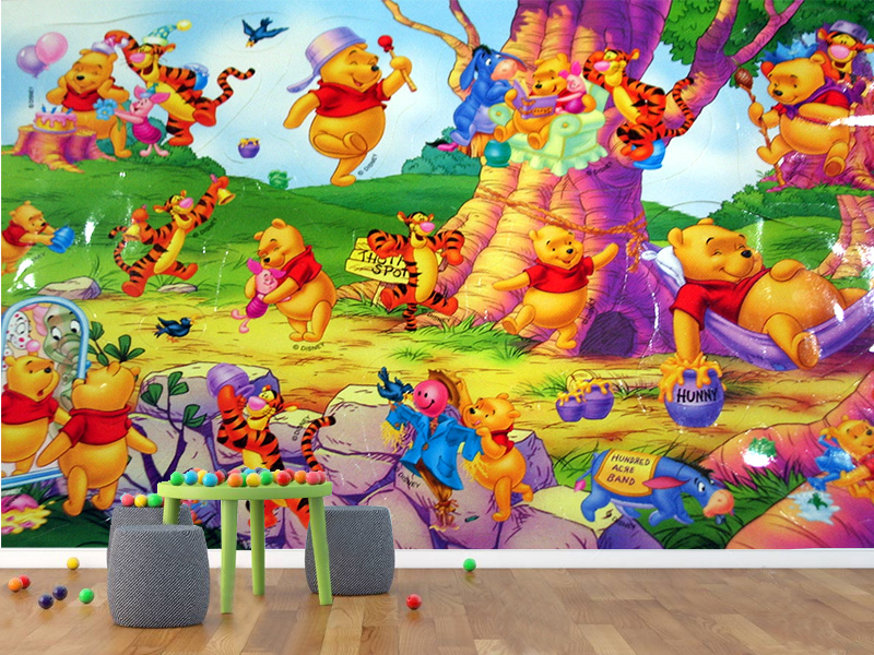 Šarena i bogata fototapeta sa Medom Puhom, Tigrom, Prasicom i prijateljima u razigranoj šumskoj avanturi. Idealna za dečiju sobu punu boja, energije i topline.