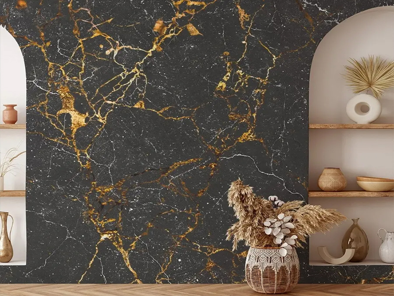 Crni mermer sa zlatnim detaljima – za enterijere koji odišu elegancijom.