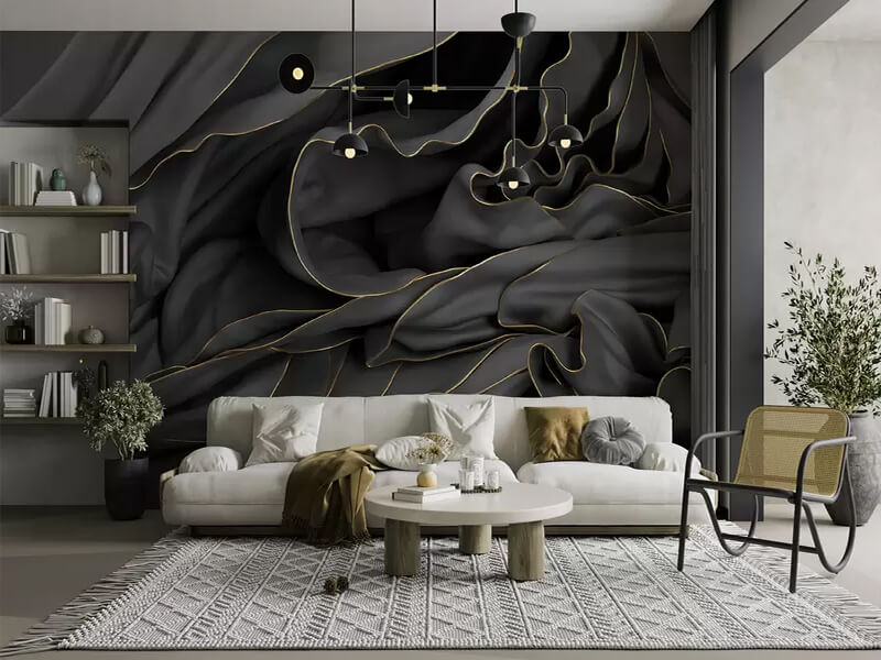 „Crni Talasi Elegancije“ predstavlja prefinjeno vizuelno iskustvo koje kombinuje efektne crne nabore tkanine i nežne zlatne naglaske. Ovaj dizajn unosi dubinu, dramatiku i luksuzni karakter u enterijer, stvarajući atmosferu modernog glamura. Idealna je za dnevne sobe, spavaće sobe i prostore gde se želi jasno naglasiti sofisticiran stil. Tapeta svojim bogatim teksturama i tamnom paletom pretvara svaku prostoriju u elegantan i ekskluzivan ambijent.