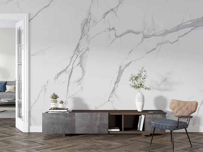 Tapeta u izgledu belog mermera unosi luksuz bez napora.