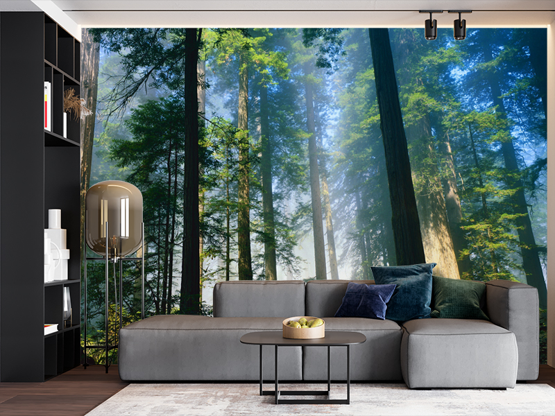 Visoka stabla kroz koja se probijaju sunčevi zraci stvaraju prizor moćne, gotovo mistične šume. Idealna za enterijere koji traže dubinu, eleganciju i smirujuću energiju prirode.