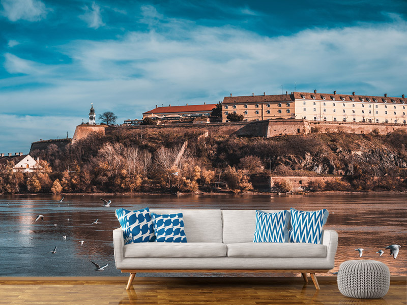 Bajkoviti Novi Sad prikazan je na ovoj tapeti, sa pogledom na Petrovaradinsku tvrđavu i Dunav.