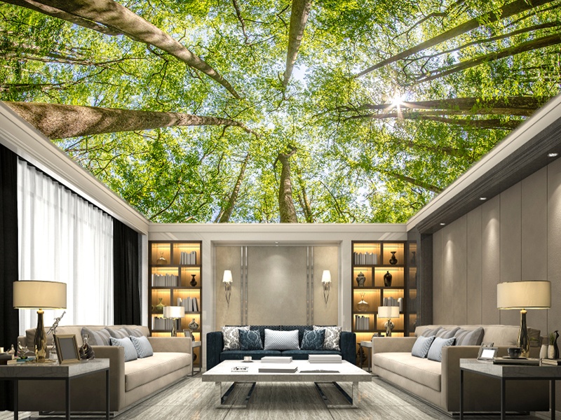 Tapeta sa motivom procvetalih krošnji drvoreda koji prave prirodni zaklon od zelenila i skoro potpuno zaklanjaju sunce.