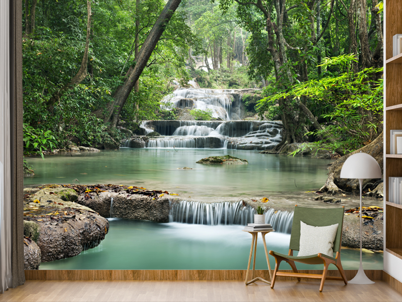 Umirujuća fototapeta sa kaskadnim potokom i bujnim zelenilom koja prostoru donosi osećaj balansa, svežine i potpune relaksacije.