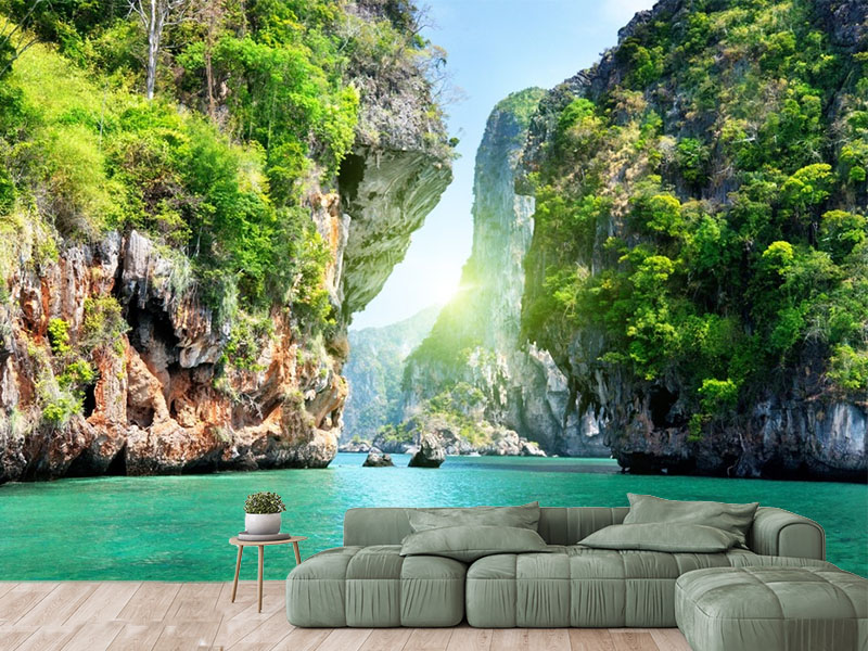 Facinantne litice Tajlanda prožete zelenilom i prozirna voda Tajlandskog zaliva transformisaće Vaš enterijer u egzotični prostor pomoću ove tapete.
