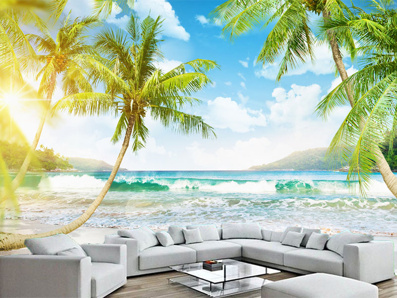 Palme, talasasto more i vedro nebo za ljubitelje tropskih pejzaža koji će Vas inspirisati, a tapeta će načiniti enterijer egzotičnim.