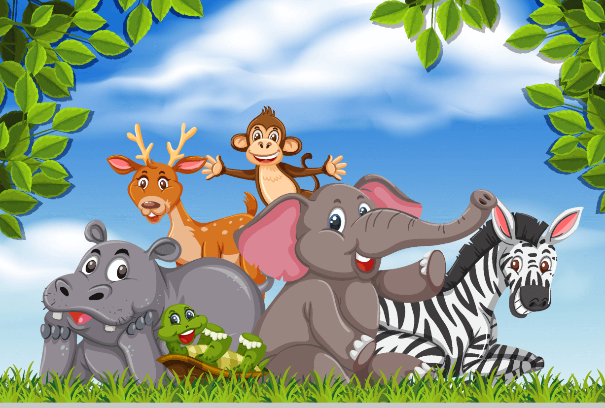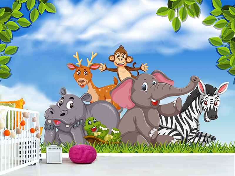 Vesela, energična i puna topline – ova fototapeta donosi pravo safari druženje u dečiju sobu. Nasmejane životinje okupljene u prirodnom okruženju stvaraju razigran prostor koji poziva na igru, smeh i maštanje.