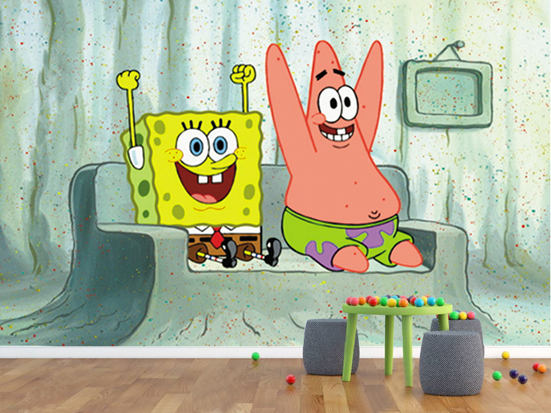 Razigrana i vesela fototapeta koja donosi Sunđer Boba i Patrika u trenutku čiste radosti. Ovaj motiv unosi humor, pozitivnu energiju i bezbrižnu atmosferu u dečiju sobu.