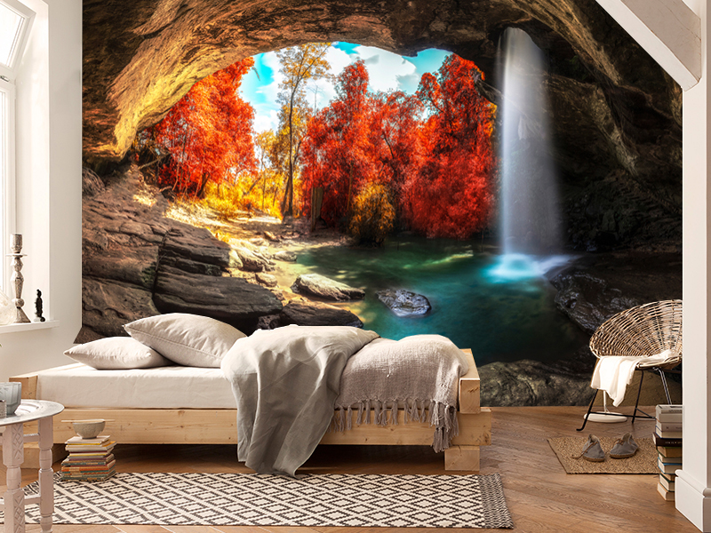 Skrivena uvala, vodopad i crveno drveće ovog pejzaža, čine ovu foto tapetu umetničkim delom koje će oplemeniti svaku prostoriju.