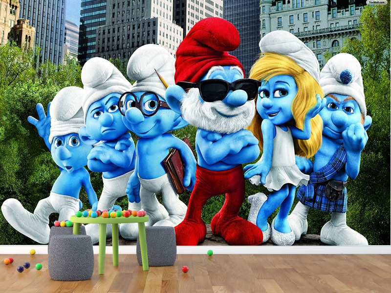 Papa Štrumpf, Štrumpfeta i ostatak ekipe prikazani su sa dozom humora i stava, što prostoru daje energiju i razigran karakter. Ova tapeta je idealna za decu koja vole zabavne, vedre i pomalo „cool“ motive.