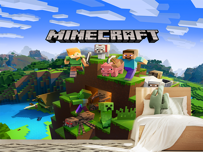 Ova tapeta podstiče maštu i radoznalost, pretvarajući zid u mapu punu mogućnosti, gde svako dete može da zamišlja sopstvene Minecraft priče i izazove.