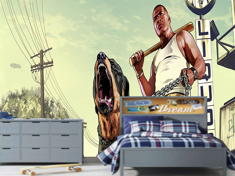 Snažna i autentična gejmerska fototapeta inspirisana svetom igre Grand Theft Auto V, koja donosi sirovu energiju ulice, snagu i nepredvidivost gradskog života. Idealna za starije gejmere i tinejdžere.