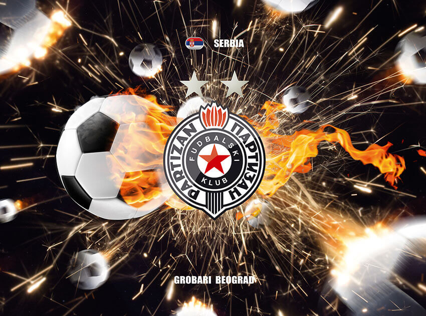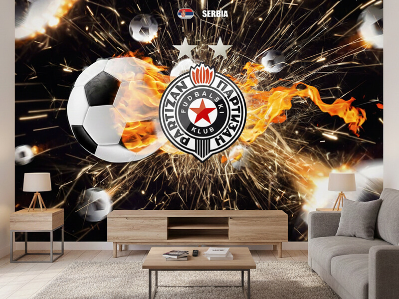 Dinamična i snažna fototapeta sa grbom FK Partizan u centru vatrene eksplozije energije. Savršen izbor za prostor u kojem strast prema klubu zauzima centralno mesto.
