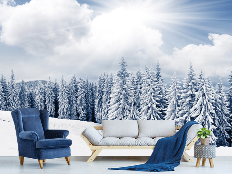 Elegantna zimska fototapeta koja unosi svežinu snežnog pejzaža i osećaj čistog planinskog vazduha u vaš dom. Idealna za ljubitelje minimalizma, prirode i svetlih, prozračnih enterijera.