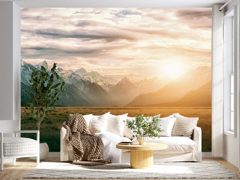 Kontrast između hladnih planinskih vrhova i topline sunčevih zraka unosi savršenu ravnotežu u enterijer. Ova tapeta nije samo dekoracija – ona postaje prozor ka prirodi, mesto vizuelnog odmora i svakodnevnog resetovanja. Idealna je za dnevne boravke, spavaće sobe ili kancelarije u kojima želite atmosferu smirenosti, elegancije i prirodne lepote.